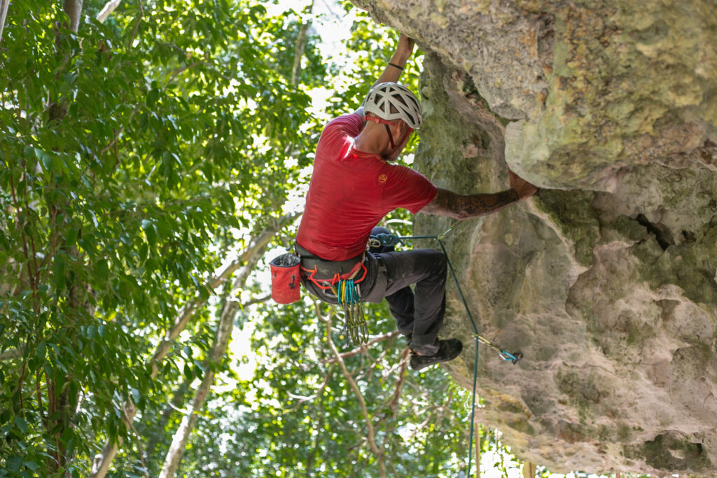 Kenneth Irizarry montando la soga (liderando la ruta o lead climbing)